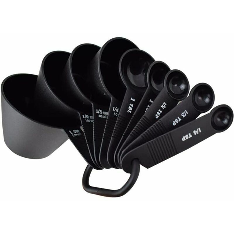 Descrizione del prodotto Materiale: plastica Il colore nero Quantità: 9 pezzi Contenuto della confezione: 9 pezzi * misurino 1. Materiale di alta qualità: il set di misurini è realizzato in plastica ABS di qualità per alimenti, sano, sicuro, leggero e resistente. Il design monopezzo rende il misurino e la tazza non facili da rompere. Il manico è spesso, resistente e comodo da impugnare. 2. Facile da misurare: i misurini possono misurare ingredienti sia bagnati che secchi. Ciascuno è inciso con il valore misurato corrispondente. Diverse dimensioni di misurini possono soddisfare le tue diverse esigenze. Quindi puoi misurare con precisione gli ingredienti durante la cottura o la cottura per preparare deliziosi piatti o dessert. 3. Facile da riporre e pulire: i misurini e i cucchiai hanno fori per appenderli all'estremità del manico, possono essere impilati o appesi al muro grazie ai loro anelli fissi. Questo metodo di archiviazione è molto salvaspazio. Il misurino grammo è facile da