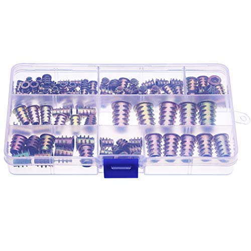 100 Pezzi M4/ M5/ M6/ M8/ M10 Mobili in Lega di Zinco Presa Esagonale Inserti a Vite Inserti Filettati Kit di Strumenti Assortimento di Noci per Mobili in Legno (7 Dimensioni)