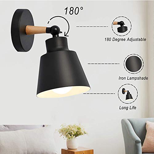 2 pezzi Moderno Stile nordico Vintage Industrial LED Applique,E27 Creativa Legno Metallo Lampada da Parete in,Lampada da parete regolabile a 90 gradi, Ristorante bar camera da letto loft bar KTV
