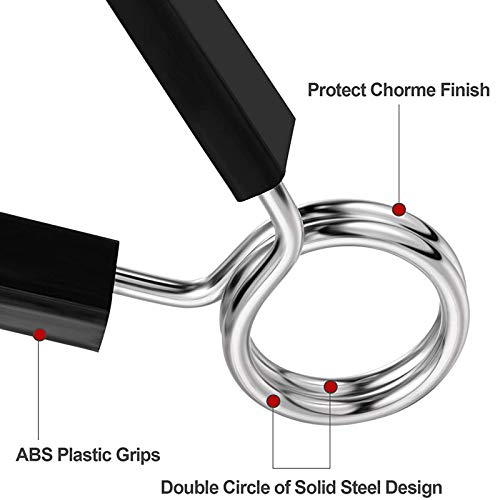DESIGN LEGGERO E CONVENIENTE: i morsetti del bilanciere possono semplificare la rimozione o l'installazione di piastre in vinile, collari per bilanciere, ecc. La fibbia a molla ha una presa forte e può tenere il piatto del peso in posizione, ed è conveniente per te esercitarti con un solo utilizzo per un lungo periodo.