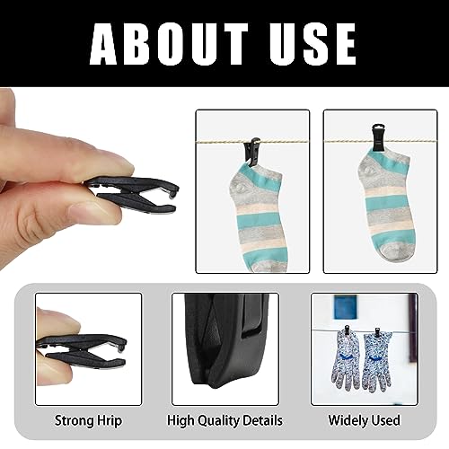 50 Pezzi Mollette per Bucato Nero, Mollette in Plastica Antiscivolo, Soft & Strong Clip Multifunzionale con Allacciare per Calze, Borse, Vestiti, Jeans e Cappelli