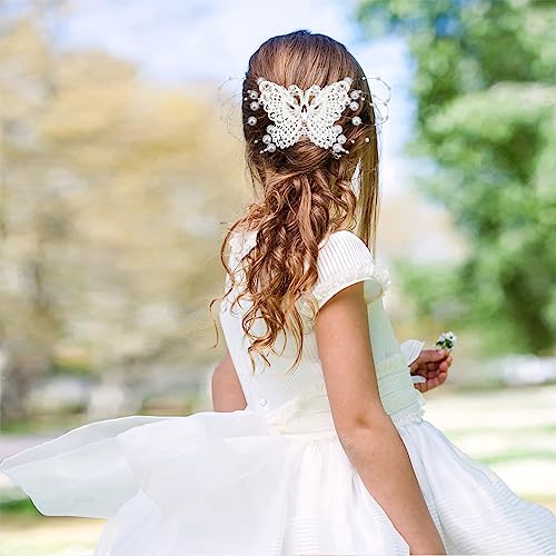 2 Pezzi Mollette per Capelli Bambina Farfalla, Bianco Pizzo Perle Farfalla Mollette per Capelli, Mollette Capelli a Farfalla Fermagli Capelli Ragazze per la Prima Comunione