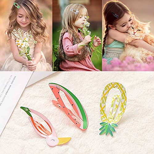 ✿ Materiale: Le graziose mollette per capelli a scatto sono realizzate in metallo di alta qualità con rivestimento esterno colorato, durevole, antiscivolo, luminose, non facile da arrugginire e non sono facili da sbiadire o staccare.