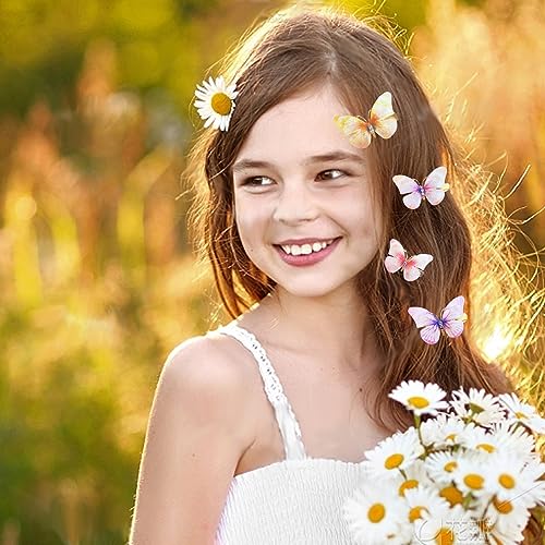 [Selezione di materiali di alta qualità] Le ali della farfalla sono realizzate in materiale poliestere, le clip a sono realizzate in lega, belli e raffinati, morbidi e confortevoli, antiscivolo, che sono leggeri, resistenti, non facili da arrugginire, non tossici, senza odori, ha eccezionale vestibilità e comfort, i materiali sicuri non danneggiano i capelli delicati delle ragazze.