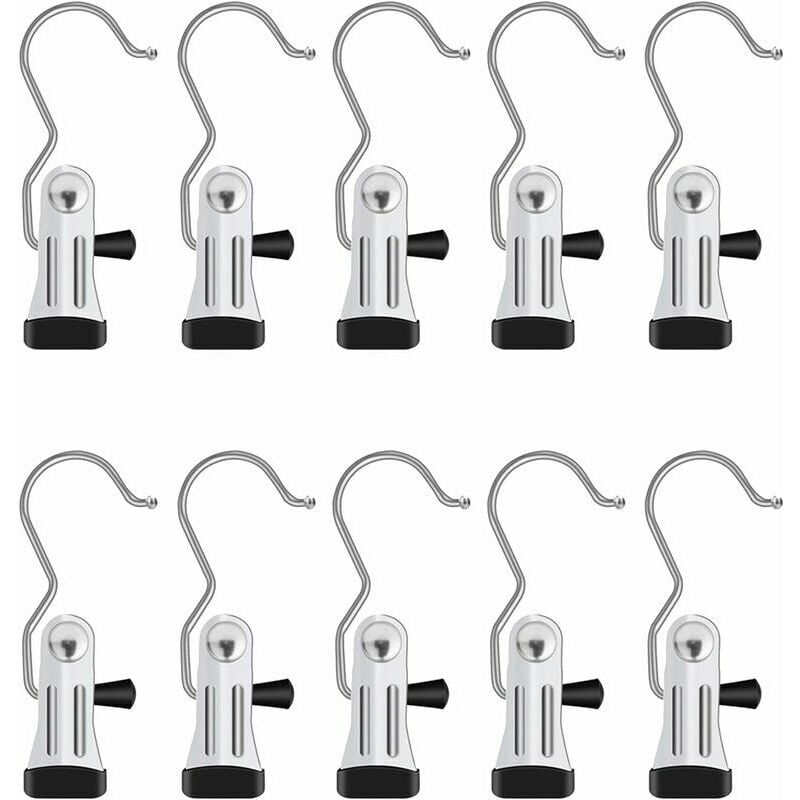 Materiale robusto: le clip in acciaio inossidabile per impieghi gravosi garantiscono qualità e longevità, sono più resistenti dei ganci in plastica, compatte e leggere e hanno una vasta gamma di usi. La molla può facilmente aprire la sospensione. Queste clip possono facilmente appendere vestiti, scarpe o stivali per riporli o asciugarli.La maniglia è antiscivolo: c'è un rivestimento in gomma liscia all'estremità della clip e non 39;