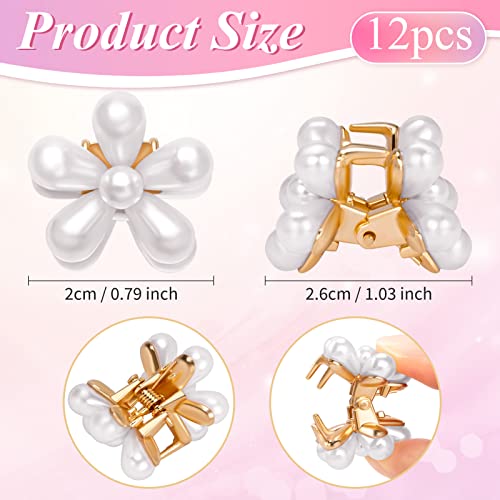 12 Pezzi Mollette con Perle per Capelli, Mini Mollette Fiori per Capelli Elegante Fermaglio Capelli Donna Capelli Artiglio Accessori per Ragazze Donna Compleanno, Festa, Matrimonio