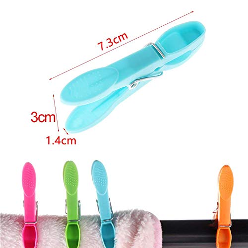 Dimensioni perfette: la clip di plastica è lunga 7,3 cm e larga 3 cm e l'apertura della clip è 1,4 cm. La clip per asciugamano si adatta a tutte le posizioni. Il peso singolo è di 4,6 grammi, leggero e facile da trasportare. Molto adatto per l'uso quotidiano.