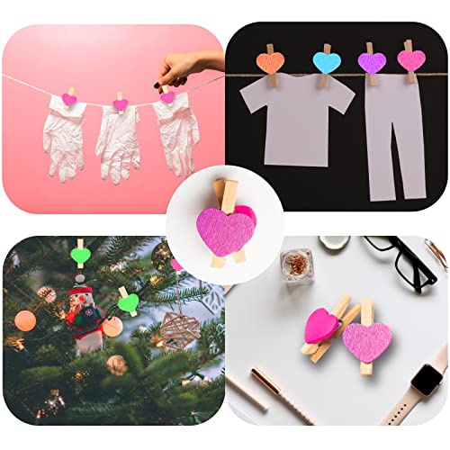 100 Pezzi Mollettine Legno Piccole, Colorate Mollette a Forma di Cuore per Foto (20 m di Corda di Iuta Inclusa) Mollette Piccole per Foto per Natale, Matrimonio, Festa, Appendere Foto.