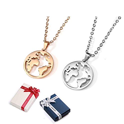 2 pezzi mondo collana signore mondo globo collana mondo mappa globo catena con mondo rotondo pendente rosa oro e argento signore mondo mappa catena con globo pendente acciaio inossidabile gioielli