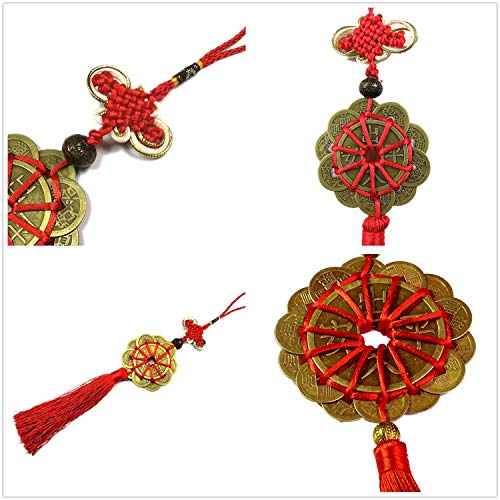 ★ 【Design significativo】 Le monete fortunate del nodo cinese includono 5 monete imitazione stile Ching-Dynasty stampate con nomi chiari di imperatori, Qianlong, Yongzheng, Jiaqing, Shunzhi e Kangxi, le persone credono che possano attrarre buona fortuna e migliorare il Chi positivo per la salute e la ricchezza quando appendili
