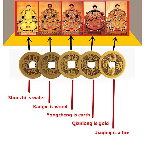 ★ 【Design significativo】 Le monete fortunate del nodo cinese includono 5 monete imitazione stile Ching-Dynasty stampate con nomi chiari di imperatori, Qianlong, Yongzheng, Jiaqing, Shunzhi e Kangxi, le persone credono che possano attrarre buona fortuna e migliorare il Chi positivo per la salute e la ricchezza quando appendili