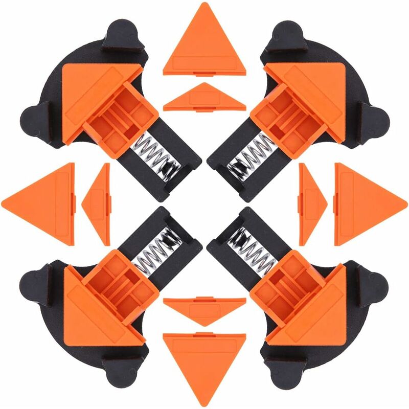 Angolo regolabile: adatto per tavole di legno con uno spessore di 5-22 mm, utilizzato per angoli di 60/90/120 gradi e giunti a T, anche per unire due tavole di diverso spessore. Facile da usare: una mano può utilizzare i 4 morsetti angolari, una mano può essere aperta e l'altra mano può scegliere e posizionare liberamente il pezzo, il che favorisce un fissaggio rapido e semplice della tavola di legno e del telaio. Funzionamento efficiente: la clip di fissaggio multi-angolo può aiutarti a fissare rapidamente e facilmente la tavola e il telaio al morsetto per la lavorazione del legno, risparmiando tempo di lavoro e riducendo il carico di lavoro. Ampia applicazione: Ampiamente usato per la lavorazione del legno, saldatura, foratura, ebanisteria, scatole quadrate, connessione per la riparazione di mobili, scatole di legno assemblate, progetti in legno fai-da-te, rinforzo del telaio e foto, ecc. Contenuto: 4 morsetti ad angolo retto con angoli 4 x 60 gradi, angoli 4 x 90 gradi, angoli 4 x