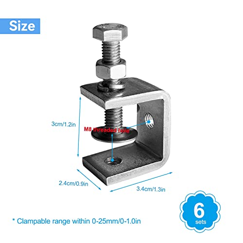 6 Pezzi Morsetti da Falegname,30mm Morsetti per morsetti a c Inossidabile 304, Resistente Morsetto Di Apertura Grande, con Apertura a Mascella, per Scrivania e Tavolo da Lavoro (30mm)
