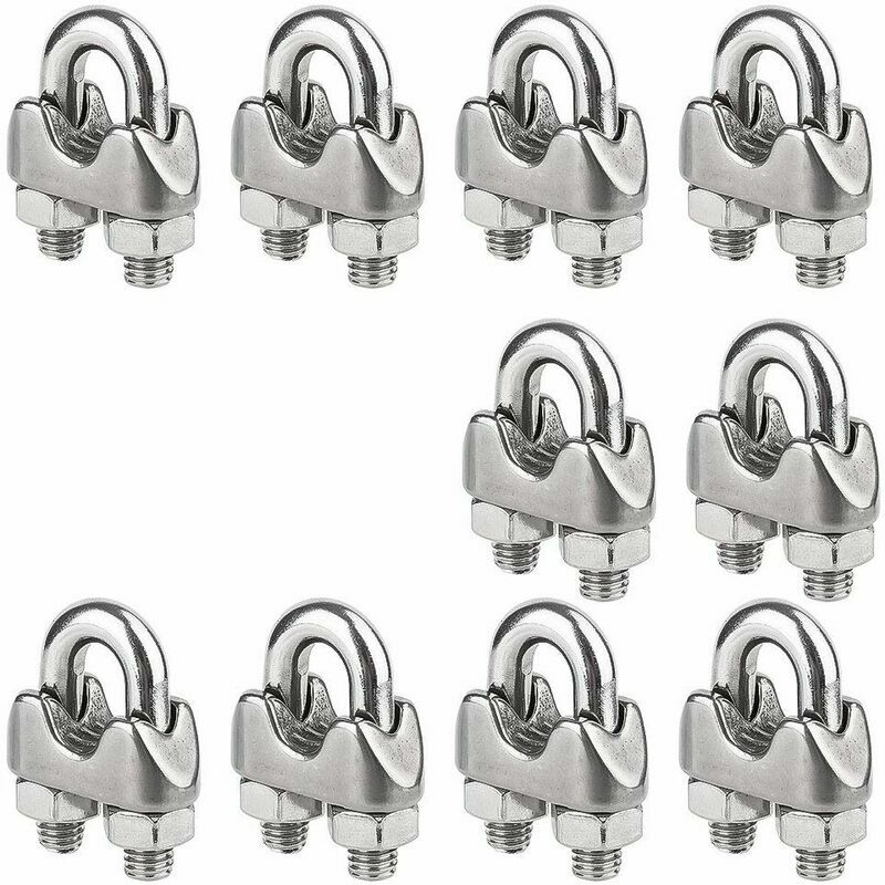 Caratteristiche del prodotto: la fascetta a spirale a forma di U viene utilizzata per formare un anello sul cavo ed è composta da una sella forgiata e due dadi. Ha le caratteristiche di aspetto lucido, resistenza alla corrosione, resistenza agli acidi, materiale spesso e forte capacità portante.,Applicazione: la fascetta è facile da installare, smontare e riutilizzare. Sono adatti per cavi in acciaio da 4 mm e altri tipi di cavi. Sono comunemente usati per appendere tende da sole, stendibiancheria, bandiere e altri oggetti in corda di acciaio inossidabile.,Dimensioni del prodotto: lunghezza 2,2 cm/0,86, larghezza 2 cm/0,78, altezza 0,9 cm/0,35. Adatto per cavo in acciaio da 4 mm. Materiale del prodotto: acciaio inossidabile 304 Confezione: 10 pezzi