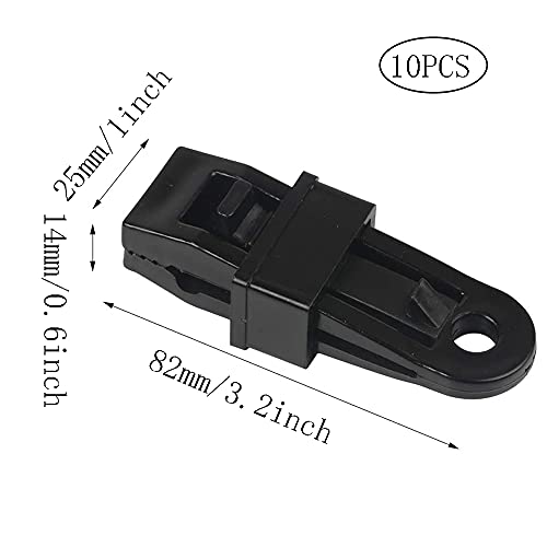 QDDS 10 Pezzi Morsetto Campeggio, Clip Telone, Tenda Campeggio Morsetto, Antivento Multiuso Clip di Tarp con Moschettone per Campeggio All'Aperto, Escursionismo, Accessori da Viaggio (Nero)