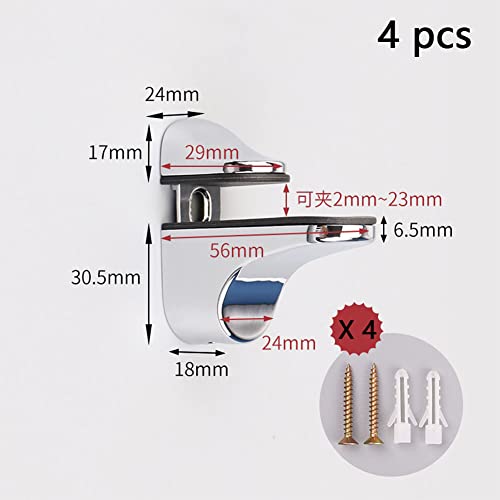 4 Pezzi Morsetto di Vetro, Staffe per Ripiani in Vetro Regolabili, Clip di Supporto Vetro Regolabili, Reggimensola Regolabile, con Accessori, per Pannelli in Vetro e Legno con Spessore di 3-22 mm