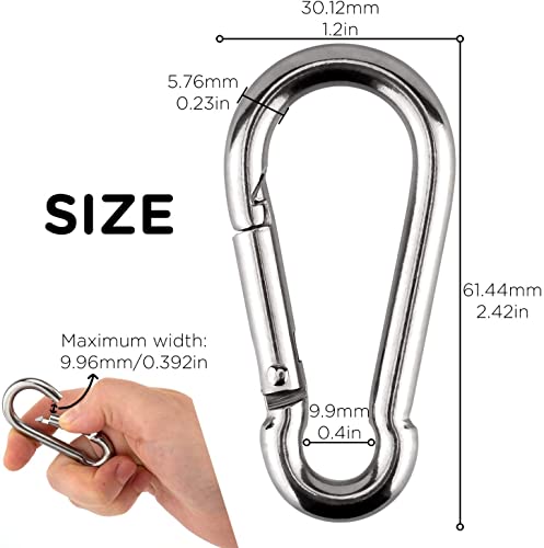 Materiale: i fermagli del moschettone sono realizzati in acciaio inossidabile 304, antiruggine e resistente. Il robusto materiale metallico assicura che possa sopportare un peso elevato.