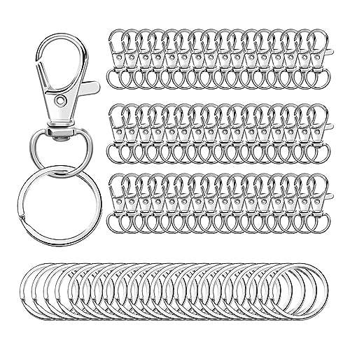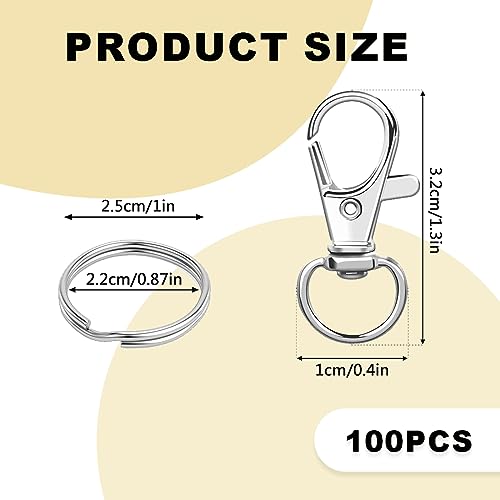 XPEX 100 Pezzi Moschettone Portachiavi,Anello Portachiavi,Anelli Portachiavi,Portachiavi Fai da Te,Ganci Portachiavi,Portachiavi A Clip Ganci A Vite Lanyard Moschettone con Anelli Separati (Argento)