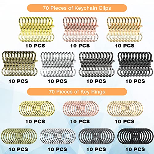 140 Pezzi Moschettone Portachiavi Metallo, Gancio Girevole Portachiavi(70 Moschettone Portachiavi e 70 Anelli Portachiavi), Ganci per Portachiavi Fai da Te per Borse Accessori Bigiotteria