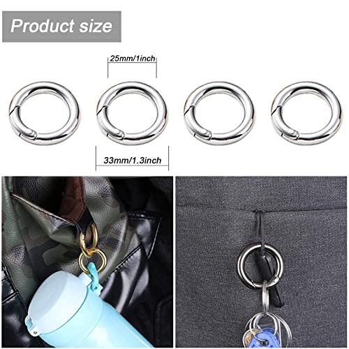 ✅【Dimensione e quantità】: Moschettoni a scatto rotondi diametro esterno 33 mm, diametro interno 25 mm, spessore diametro 4 mm, 24 pezzi.