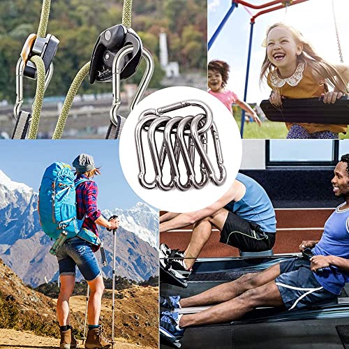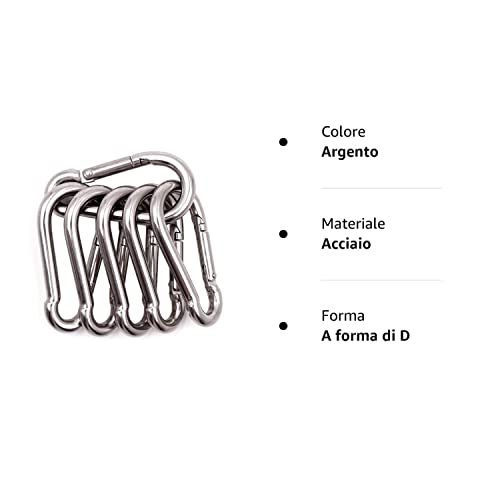 6 Pezzi Moschettoni Acciaio Inossidabile 304,Forma D Moschettone,Portachiavi Piccolo, per Campeggio/Trekking/Zaino-capacità di carico fino a 70 kg-M6