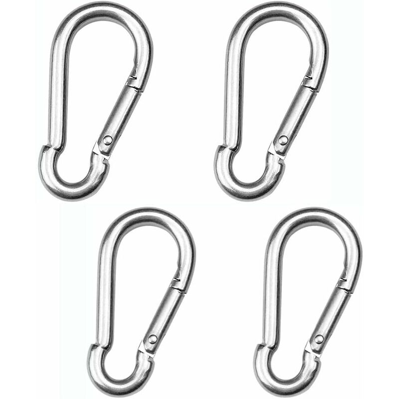 Caratteristica: NON PER L'ARRAMPICATA. Lunghezza: 60 mm, spessore cinturino: 6 mm, questo moschettone può sostenere un carico fino a 70 kg. Il design compatto lo rende comodo e facile da trasportare. Disclaimer: Questo prodotto NON è applicabile per arrampicata, oscillazione, amaca, ecc. Assicurarsi che il blocco a vite sia stretto al 100% prima di appendere il carico pesante. Materiali di alta qualità: acciaio inossidabile 304, anticorrosione, antiruggine, non facile da deformare, molto adatto per attività all'aperto. Carabiner progettate per connessioni rapide e convenienti, ha una molla e chiusura automatica che consentono un rapido collegamento / disconnessione di corde, catene e cinghie. ampiamente usato: usato per la vita di tutti i giorni, attaccato allo zaino o alla borsa per appendere chiavi, torcia elettrica, corde, corde, tubi, bottiglia d'acqua e altri oggetti. Può essere utilizzato anche come portachiavi. Molto resistente e ideale per escursioni, campeggio, ciclismo