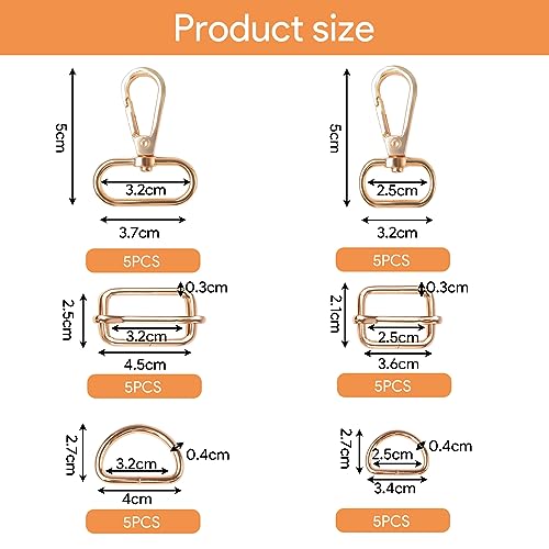 Set di accessori per borsa: composto da un totale di 30 pezzi, ci sono due misure da 25 mm e 32 mm, ogni misura ha 5 moschettoni girevoli, 5 anelli a D e 5 fibbie per cintura, in grado di soddisfare una varietà di esigenze diverse.