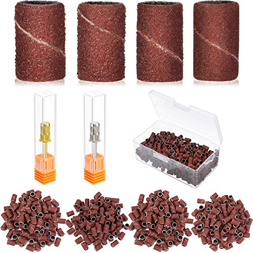 400 Pezzi Nastri Abrasivi per Unghie Punte per Unghie Sabbia Abrasive Unghie Lima per Unghie Acriliche Manicure Set Abrasivi Trapano Unghie, 80/120/ 180/240 con 2 Pezzi Punte per Trapano e 1 Scatola