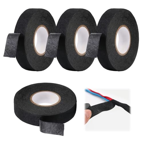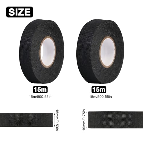 WHC 4 Pezzi Nastro In Tessuto, Nastro Isolante Nero, Resistente Al Nastro Telato Nero per Cablaggi Temperatura Cablaggio Avvolgimento Isolamento per Moto Automobile E Casa (19mm X 15m / 15mm X 15m)