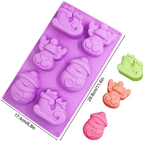 1. Ottima confezione: viene fornito con 3 stampi in silicone di Natale con albero di Natale, alce, calze, campane, regalo, pupazzo di neve, slitta, Babbo Natale, ottimo regalo per Natale, feste, fai da te