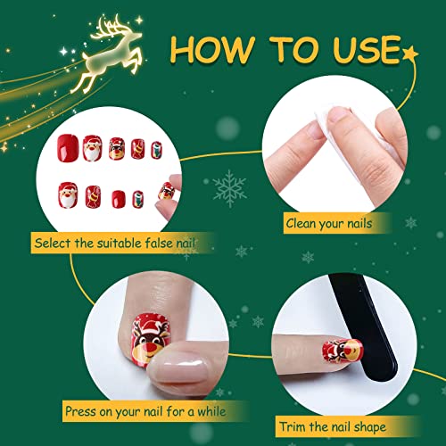 Dimensioni Varie: Ogni scatola di unghie finte Natale contiene 12 diverse dimensioni di punte per unghie finte colorate con 2 pezzi di ogni dimensione, adatte a ragazze di età superiore a 5 anni e alla maggior parte delle unghie dei bambini.