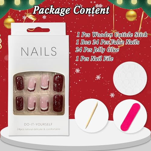 【La confezione contiene】Riceverai 24 Natale unghie finte, 1 foglio di linguette adesive, 1 lima per unghie e 1 bastoncino di legno, non è necessario acquistare nient'altro, fornendo tutto il necessario per un'esperienza alla moda nel salone di unghie finte.