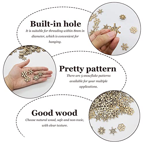 200 pezzi natalizi in legno a forma di fiocco di neve Mini Fiocchi di Neve Decorativi Fiocco Legno Neve L'albero di Natale Etichetta Regalo fiocchi fai da te in legno incompiuto ornamenti in legno