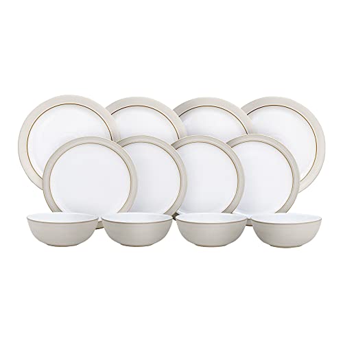 Il set contiene 4 piatti piani e 4 ciotole per cereali sapientemente realizzate a mano dalla sofisticata gamma di tela naturale di Denby Pottery