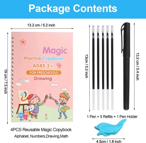 【SET DI CALLIGRAFIA PER BAMBINI】Riceverai 4 quaderni di scrittura in inglese (alfabeto + numeri + matematica + disegno), 1 penna con 5 ricariche e 1 portapenne. Molto adatto a bambini di età superiore a 3 anni. È il miglior regalo per iniziare i primi passi di apprendimento dei bambini.