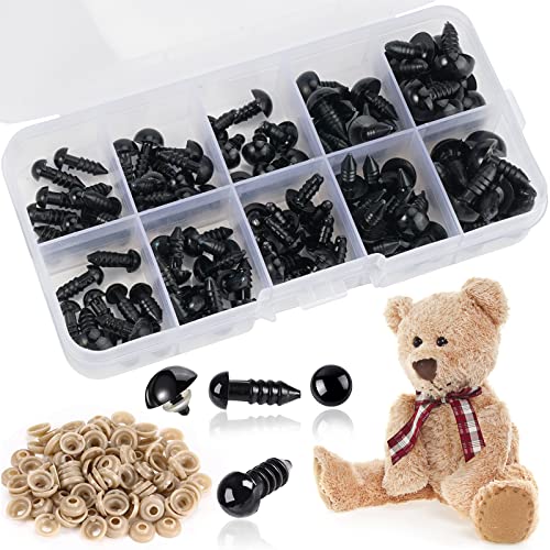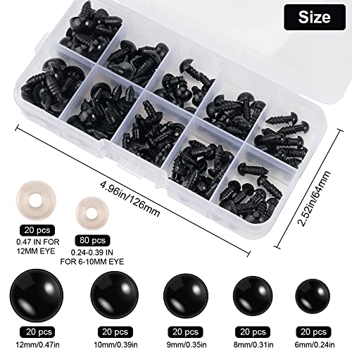 100 pezzi Occhi di Sicurezza 6-12 mm, Occhi per Pupazzi con Rondelle, Plastica Neri Occhietti, Piccoli Occhi per Bambole, Occhietti di Sicurezza, per Bambole Pupazzi,Giocattolo,Animali All'uncinetto