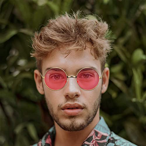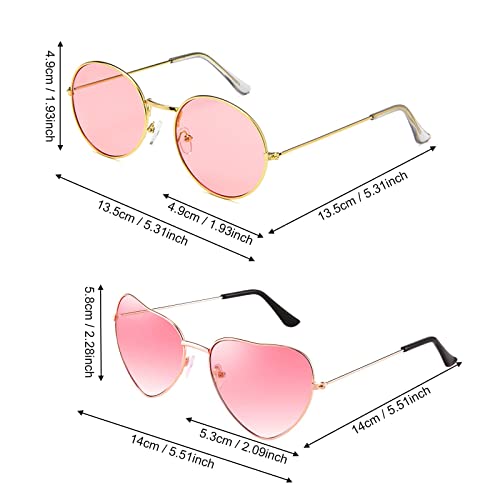 2 Pezzi Occhiali da Sole Hippie Rotondi, Occhiali da Sole Stile Hippy, Hippy Occhiali da Sole di Uomo, Occhiali da Vista a Forma di Cuore, con Pellicola Sfumata Colorata, Occhiali per Travestimenti