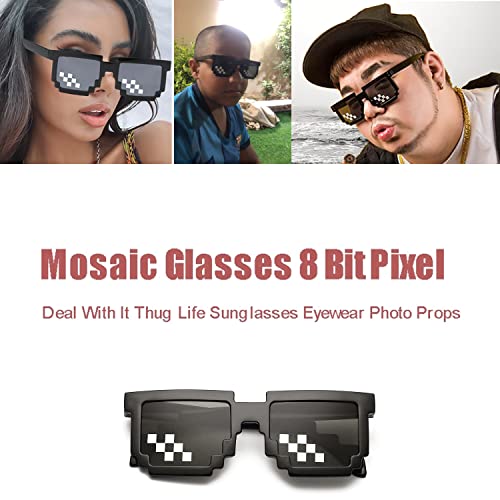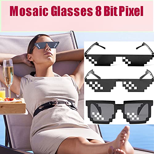 3 Pezzi Occhiali Thug Life, Occhiali Pixel Mosaico, Occhiali da sole Mosaic Pixel, Occhiali da Sole Pixel di Plastica, Occhiali da Sole Mosaico, Occhiali da Sole Pixel Divertenti per Bambini Adulti