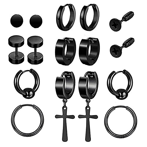 8 Pezzi Orecchini Pendenti in Acciaio Inossidabile, Set di Orecchini a Bottone, Orecchini a Bottone Neri, 8 Forme Cerchio Orecchini Piercing, Uomini e Donne Indossano Orecchini per Decorazione