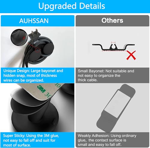 【Materiale durevole e sicuro】 Organizer per Cavi Elettrodomestici Realizzato con strisce adesive 3M, morbido e flessibile da applicare su superfici piane o curvere, ha un'adesione affidabile e non cadrà facilmente.