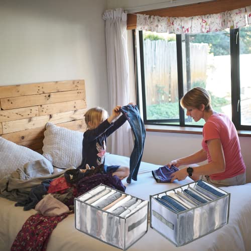 3 Pezzi Organizer Jeans Cassetti Rigido,TOOSOFt Organizer Jeans e Maglietta,Portaoggetti Pieghevole In Rete Trasparente per guardaroba in nylon da per Jeans/Tshirt(Grigio, 7Griglie+7Griglie+9Griglie)