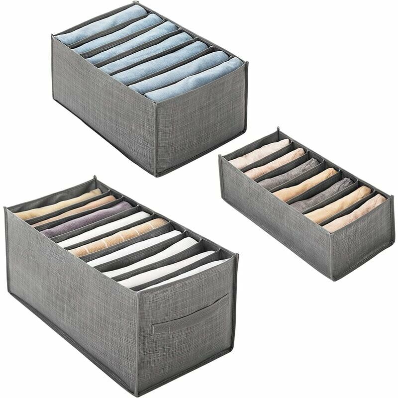 NOTA - Esigenze di spedizione, il prodotto che riceverai sarà stropicciato. si consiglia di lavarlo prima dell'uso. 【Scatola portaoggetti】 Riceverai 3 pezzi della varietà di specifiche dell'organizzatore dell'armadio (grigio, 7 celle + 7 celle + 9 celle). Le dimensioni sono 35 x 17 x 12 cm, 35 x 24 x 17 cm e 44 x 25 x 20 cm. La diversa scatola di immagazzinaggio soddisfa le tue esigenze quotidiane.