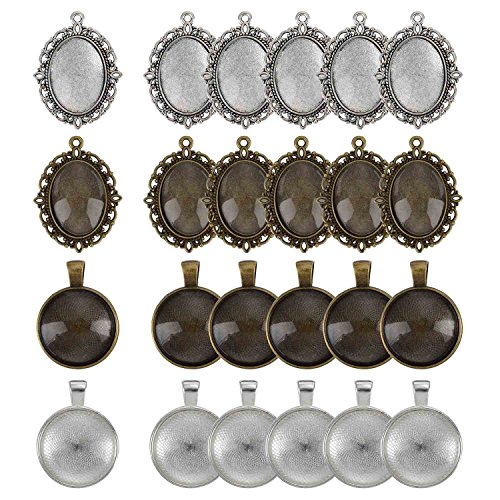 6 X ciondolo con ciondolo in argento, 6 X bronzo rotondo tondo, 6 X argento ciondolo ovale, 6 X ovale bronzo ciondolo circolare in vetro cupola, 12 X e 12 X, ovali in vetro cupola