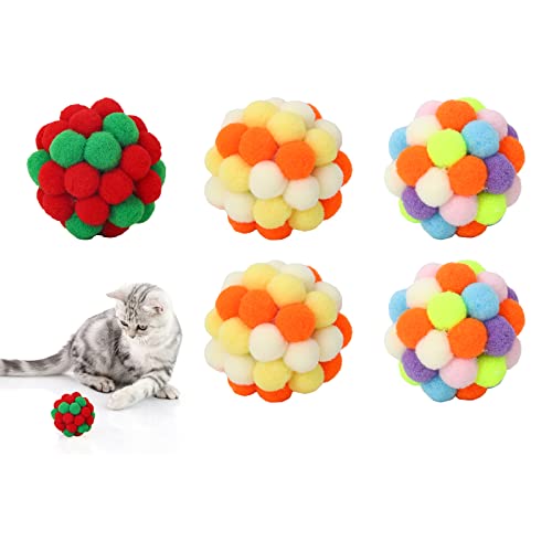 6 pezzi palla giochi per gattini Gatti interattivi Pompon Ball Toy,Gatti palla elastica colorata,Morbido Gatto Balls,Giocattoli da Masticazione Interattivi per gatti da interno Gattino