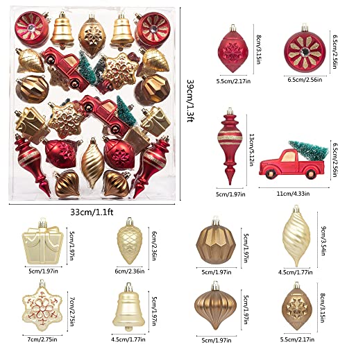 44 Pezzi Set palla di natale oro e rosso decorazioni albero di natale Ornamento palla decorazioni, Set di plastica Compreso Albero palline di natale, Fiocchi di Neve,pacco, auto natalizio
