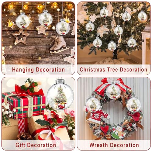 ⛄【Crea Atmosfera Natalizia】Trasparenti Palle di Natale è una decorazione ideale per Natale. Le palline trasparenti dell'albero di Natale possono essere riempite con neve artificiale, bacche rosse, piccole bacche, aghi di pino, aghi di pino, foglie di cedro, mini pigne, foglie verdi e rami da utilizzare come decorazioni natalizie e scene di neve in miniatura.