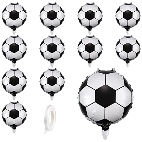 AIEX 12 Pezzi 45,7cm Palloncini de calcio, Decorazione per Palloncini Feste Calcio con Cavo Bianco da 10m Articoli per Feste di Calcio per Tema di Calcio Compleanno per Bambini Feste Decorazioni