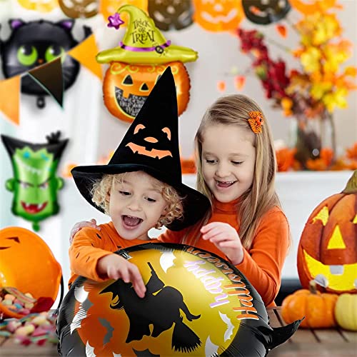 【Set di palloncini decorativi divertenti per Halloween】 Questo set di palloncini in alluminio per Halloween contiene 9 palloncini di Halloween, come teste di mostri, pipistrelli, fantasmi, cappelli di zucca, streghe, ragni neri, ragnatele, scarpe e gatti neri. Dolcetto o scherzetto! Sei pronto per una divertente festa di Halloween?