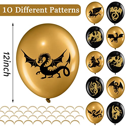 50 Pezzi Palloncini del Tema Drago per Decorazione di Compleanno a Tema di Dragone in Oro Nero Scelte di Forniture per Feste a Tema di Draghi e Fantasia, 12 Pollici
