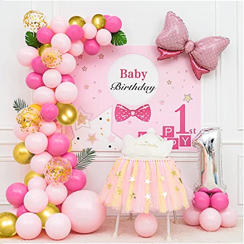64 Pezzi Palloncini Fucsia Rosa e Bianchi Oro,Lattice Palloncini Metallici Coriandoli Ghirlanda Arco Kit,per Decorazioni Festa Compleann,Matrimonio Anniversario,Battesimo Bimba,Laurea Decorativi
